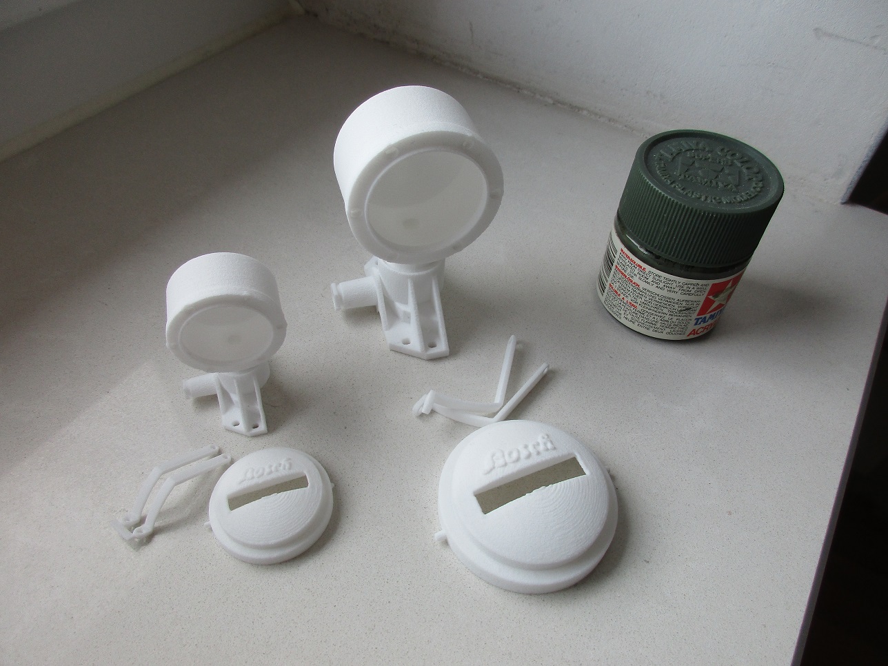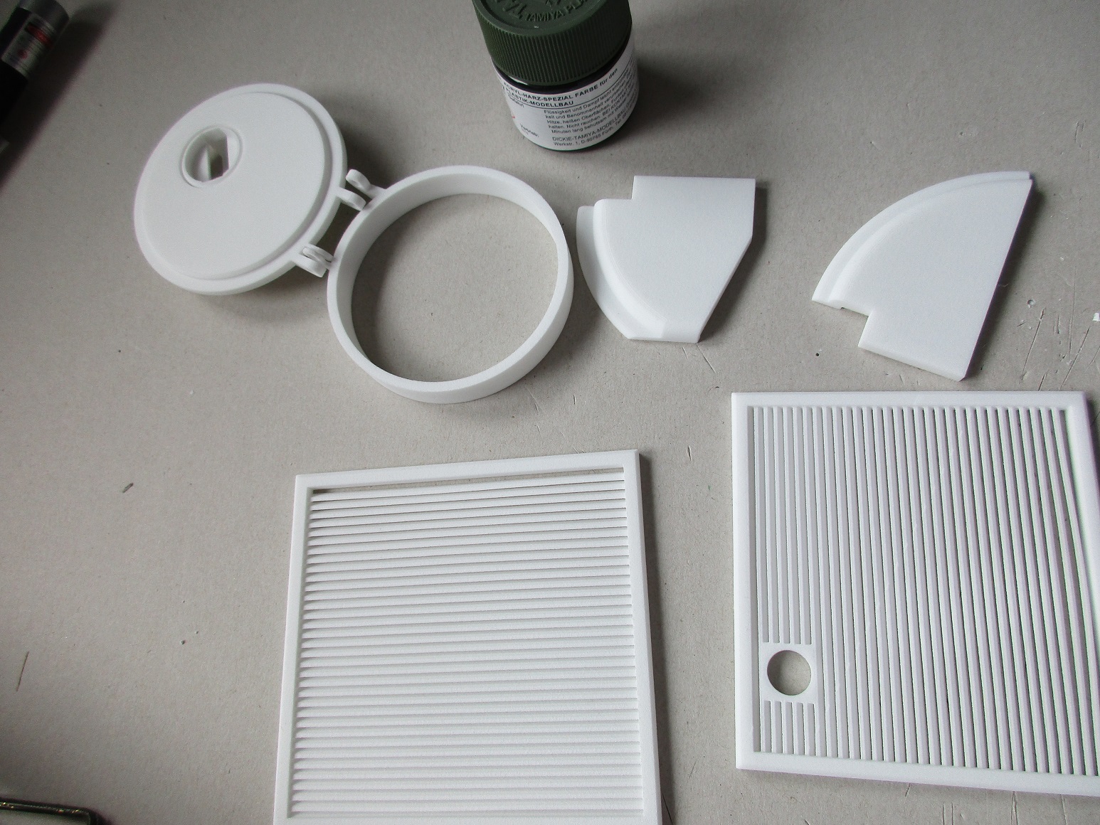 Aktuell nachgefragt waren für einen 1:10 Pacolicz Bergepanzer (das spielt allerdings keine Rolle) ein Antennenfuß und die Nebelbecher nebst Halterung. Besonders die bereits vorhandn 1mm Bohrungen für die Kettchen lassen hier noch viel mehr zu!