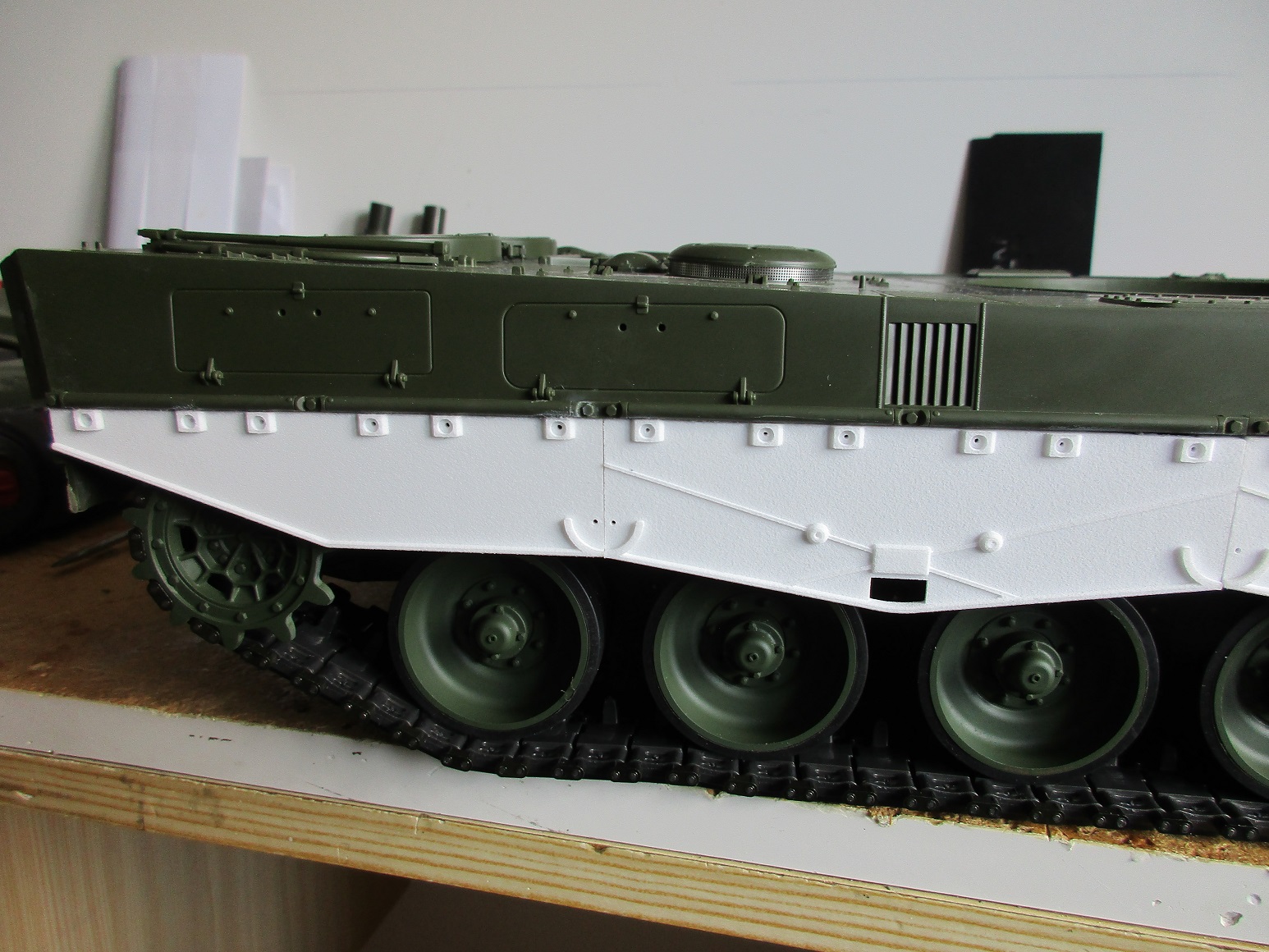Da ich selbst aktuell Leo2A4 baue konnte ich ein paar Fotos meiner Druckteile am Modell machen. Hier die leichten Schürzen.