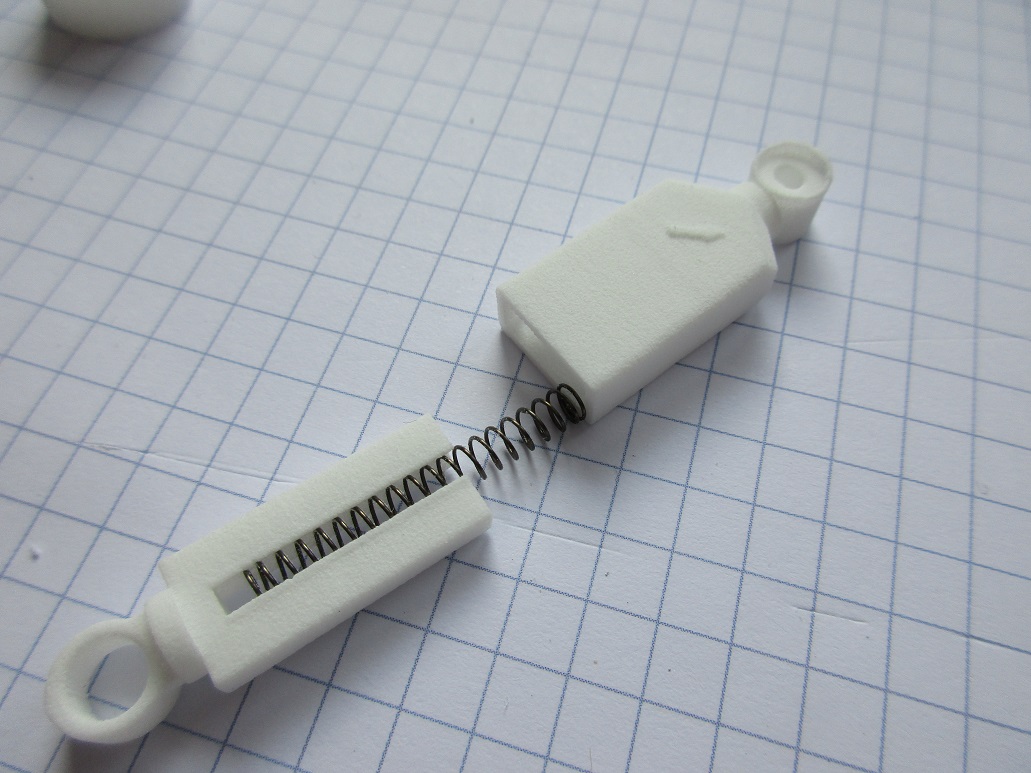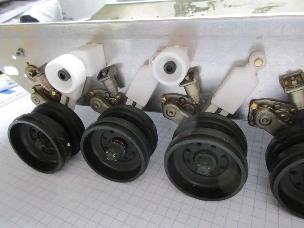 Dazu weil mich das immer nervte selbstentworfene Dämpfer mit Federn und die Distanzstücke der Stützrollen sowie Rollen.