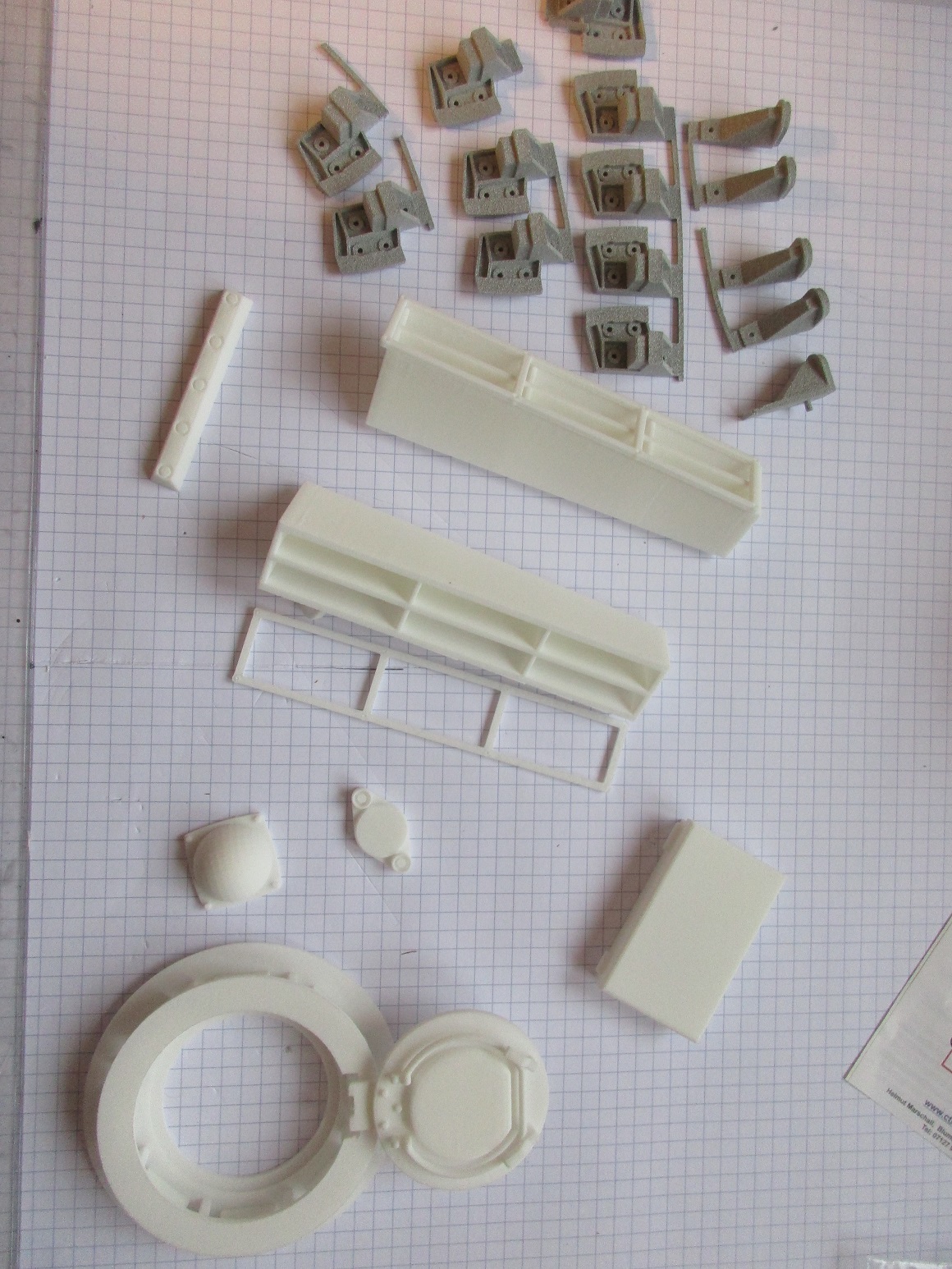 Mittlerweile sind die Teile für das StuG III auch in Hardware eingetrudelt. Die grauen Achsanschläge sind aus "Alumide" ein Alu- Kunststoffgemisch.