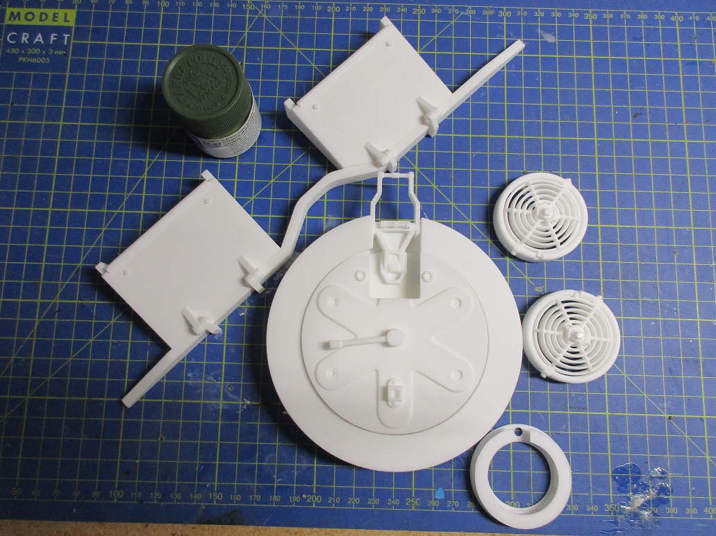 Ich möchte hier ein Foto veröffentlichen was deutlich die Unterschiede von 1/6 zu 1/16 zeigt. Die "großen" Teile sind M1/6, der Lukenring rechts unten ist 1/16. Daran kann man ungefähr erahnen warum "skalieren" wenig sinnvoll ist. Würde ich den 1/16 Ring "einfach" hochskalieren auf 1/6 ergäben sich unnötig dicke Wandstärken und man lässt ganz viel Spielraum für Details liegen. Umgekehrt- ein 1/6 Teil (Beispiel) in 1/16 zu verkleinern zerstört alle Details die in 1/6 noch machbar waren (im Druck min. Wandstärke 1mm in 1/6 wären in 1/16 0,375mm also "weg").