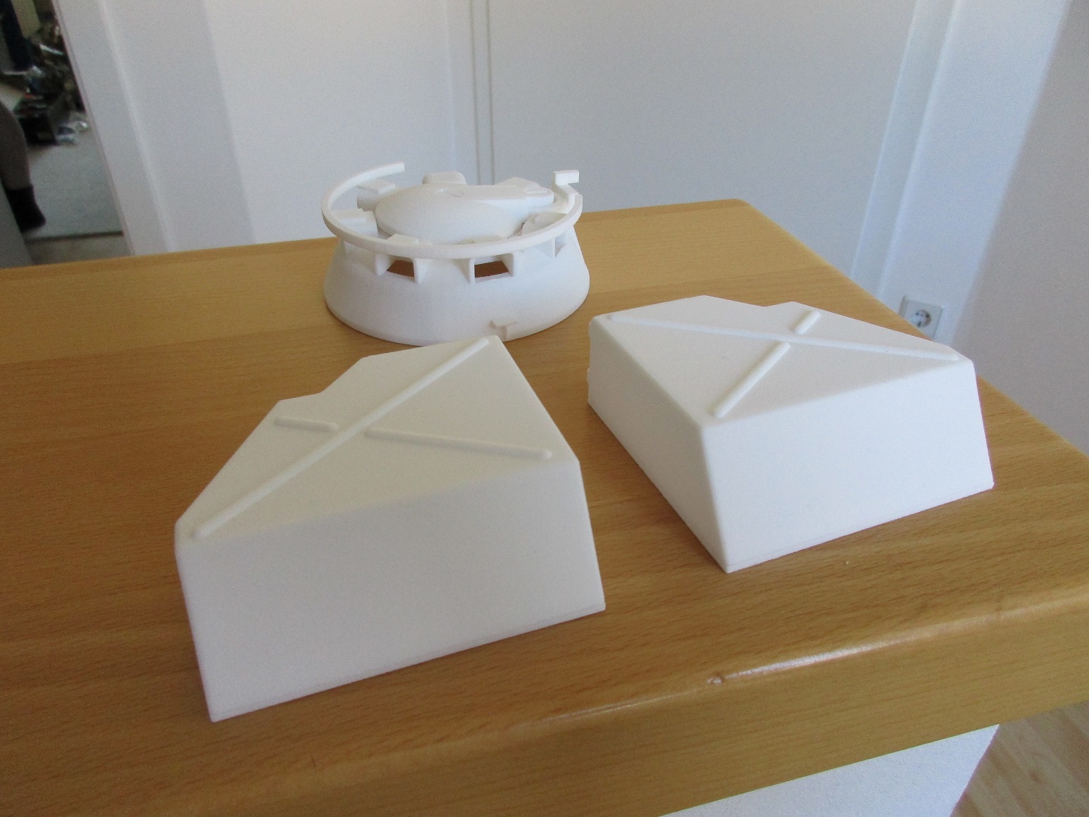 Ausserhalb hier zu sehender Bauberichte was neues. Mein Sohn ist im Gegensatz zu mir mit Spaß bei Elektro dabei. So haben wir gemeinsam ein Gehäuse für einen Steckdosenwürfel entworfen. Für einen anderen Kunden, der einen Panther in 1zu 10 wiederaufbaut durfte ich ein paar Teile anfertigen.