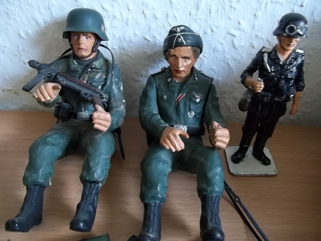 irgendwie sehen mir die Stiefel der beiden größeren Figuren nicht nach Wehrmacht aus... eher wie US-Schnürstiefel. Waren evtl. ursprünglich mal bei einer anderen Armee im Dienst, bevor sie auf Wehrmacht getrimmt wurden!?