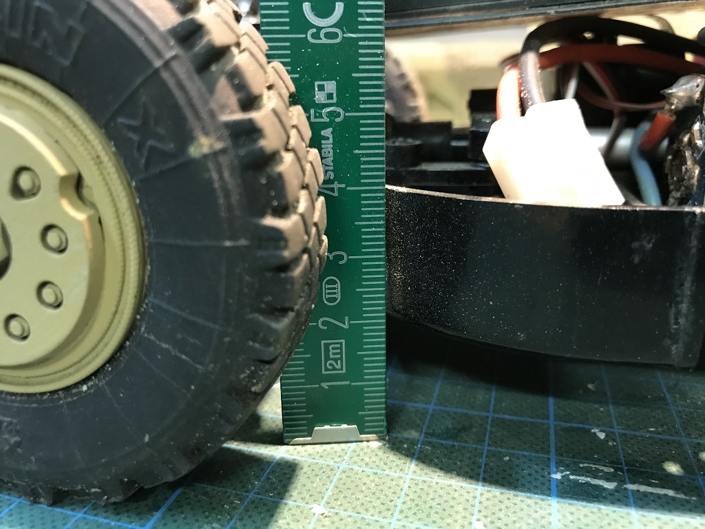 Bei meinem Fahrgestell müssten es 20-26mm sein, da ich aber wie gezeigt gerade an der Dämpferbrücke arbeite ist das jetzt blöd..