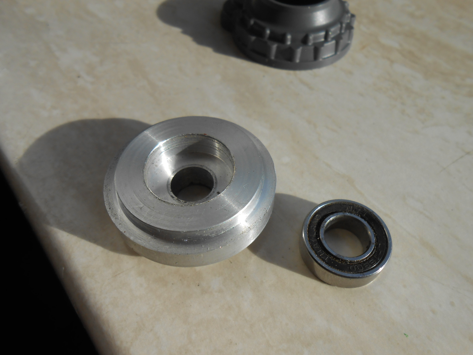 Bislang habe ich folgendes gemacht für die Antriebsachse habe ich aus Alu diese runden Einsätze gedreht in denen ein Kugellager eingepasst wird damit die Antriebsachse schön fest sitzt.