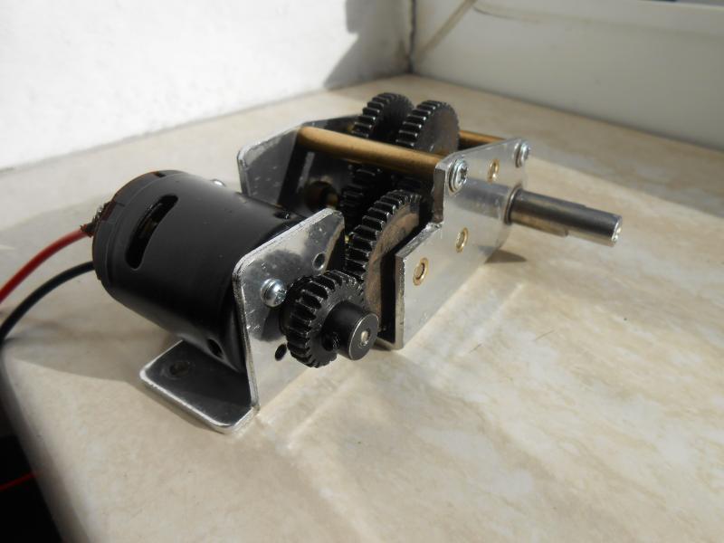 wenn Du die Kegelräder an den EIngang des Getriebes setzt, was empfehlenswert ist (siehe Thread Antriebe) dann benötigst Du lediglich eine gescheite Lagerung und eine Achse mit Absatz, die die Außendurchmesser entsprechend der Kegelräder und der Innendurchmesser der bisherigen Motorwellen hat (wahrscheinlich 2,3 mm).