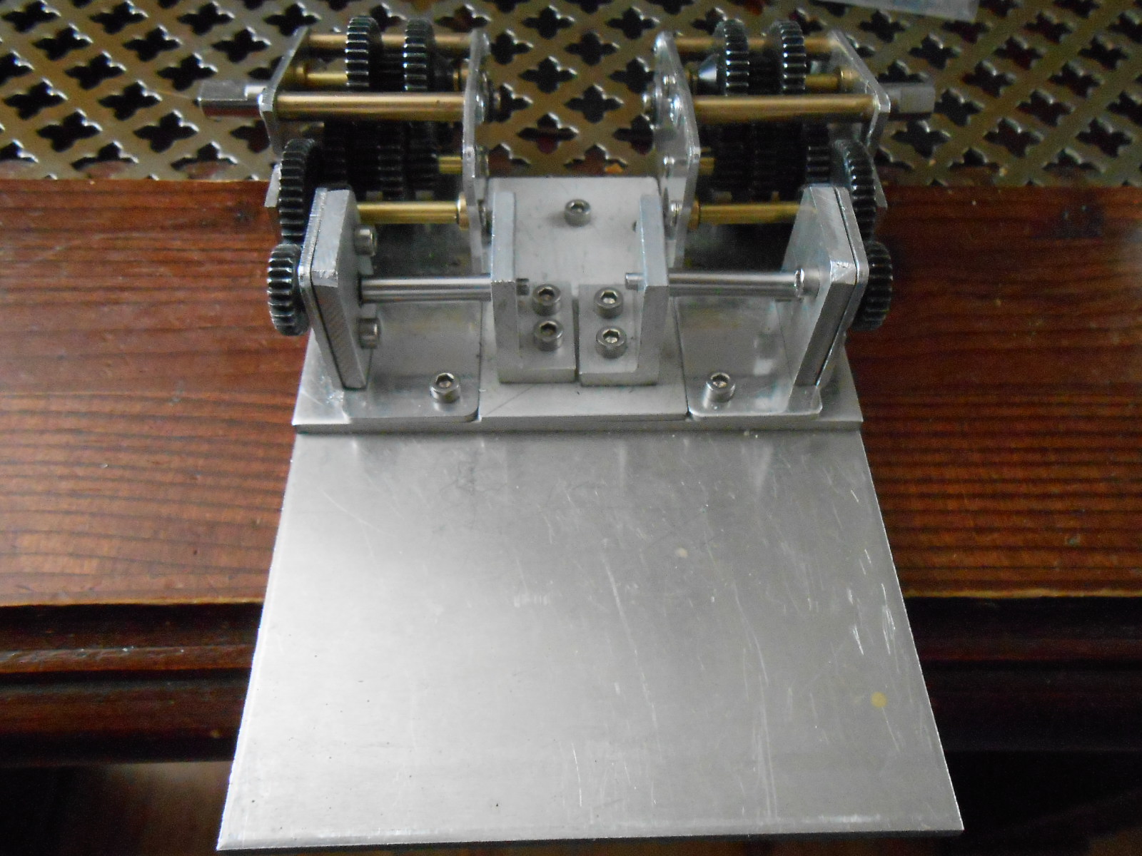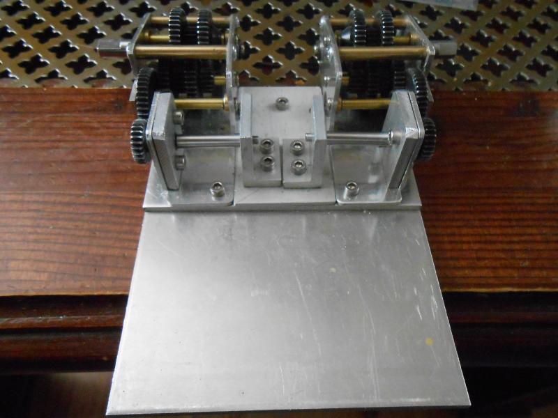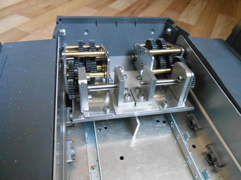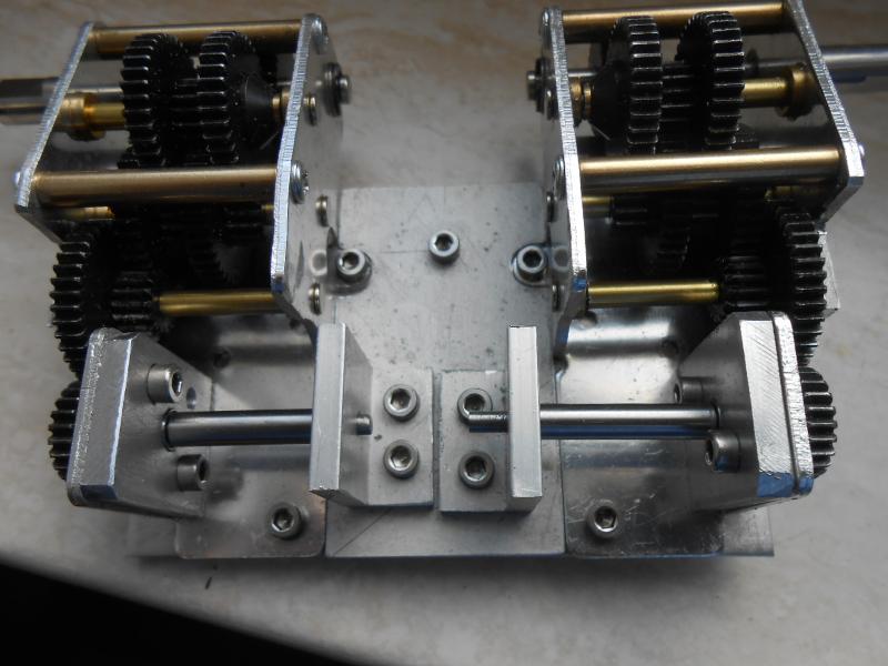 so hier wieder ein paar Bilder von meinem Getriebe fast fertig Die Grundplatte wurde erweitert allerdings etwas tiefer als die Platte mit den Zahnrädern weil ich die Achsen von den Motoren auf gleicher hohe wie die letzte Zahnradachse haben muss.