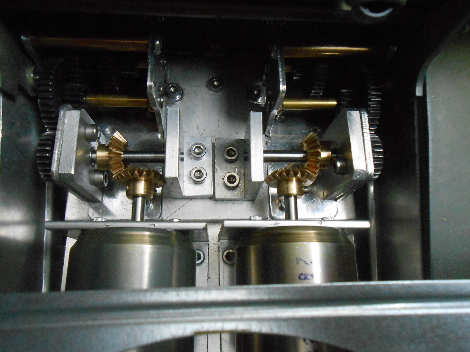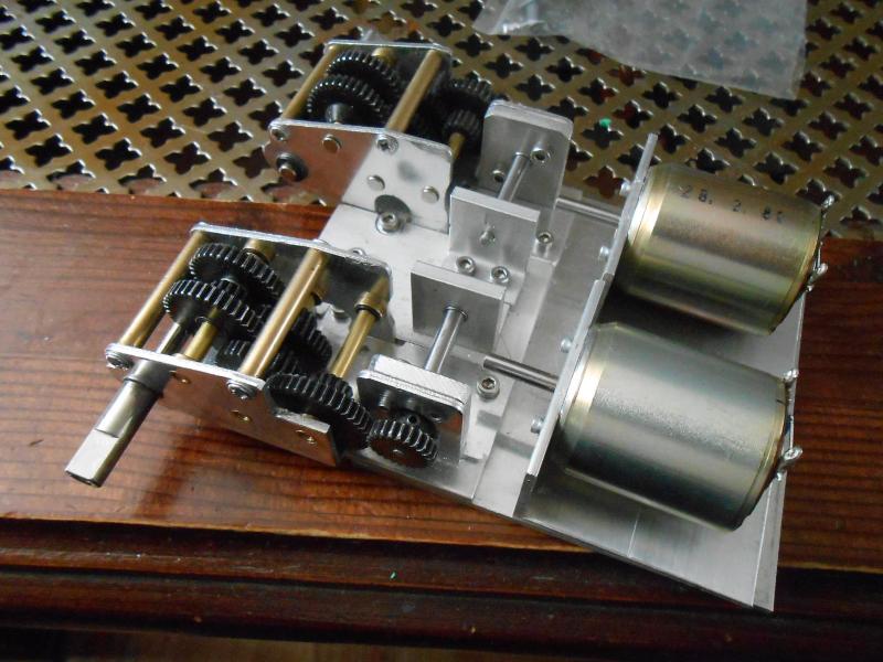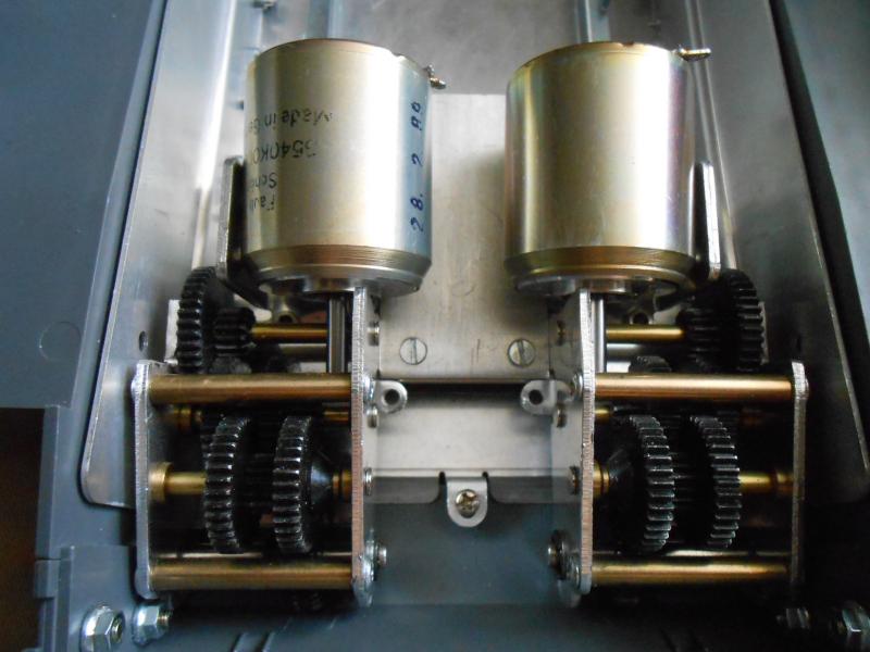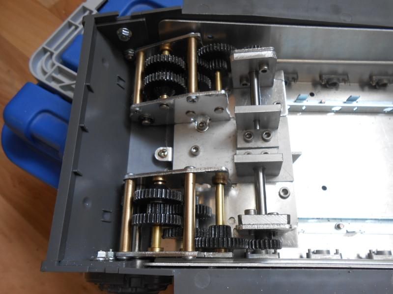 soviel heute von mir . Jetzt muss ich mir erst mal die Kegelräder besorgen und überlegen wie ich die Motoren befestigt bekommen weil das ganze nicht in Waage steht sondern schräg hoch geht. ich weiß nicht ob man das auf diesen Bild erkennen kann auf jeden Fall geht die ganze Getriebe Einheit schräg von den Antriebsrädern ab ein wenig hoch in Richtung Turmöffnung. Es müßte aber meiner Meinung nach noch genug platz für die Motoren sein.