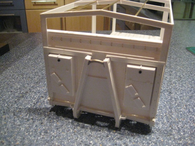 Nachdem alles schön trocken ist, verkleben wir die senkrechten Rungenhalter.