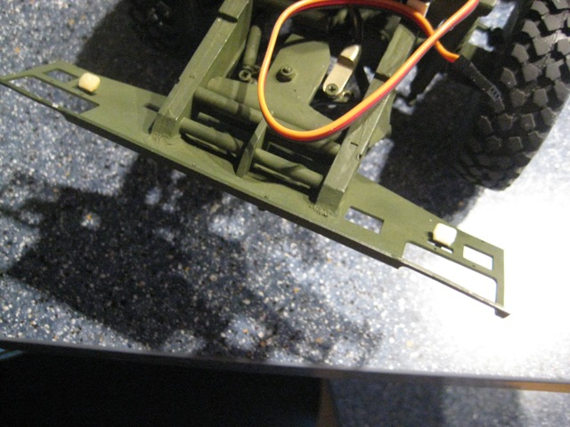 Am Fahrerhaus unten mussten noch zwei kleine Poly Zuschnitte angebracht werden, bevor es mit den Scheinwerfern weiter gehen kann.