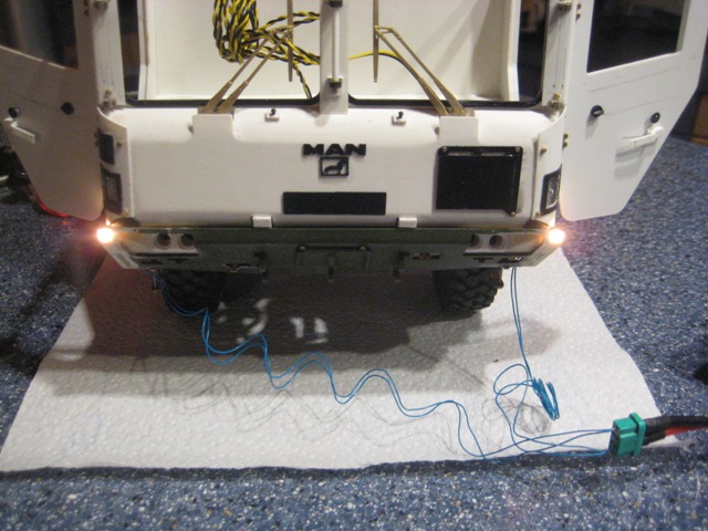 Dann kommen an diesen noch zwei kleine Scheinwerfer.