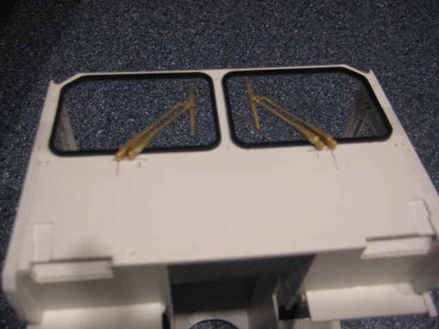Die Scheibenwischer wurden positioniert, damit der vordere Aufbau begonnen werden kann.