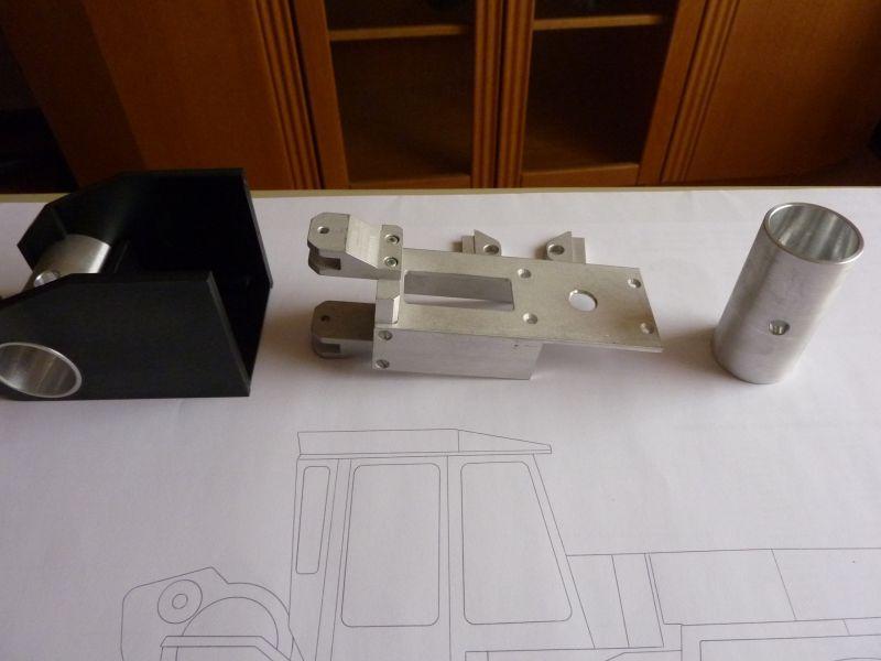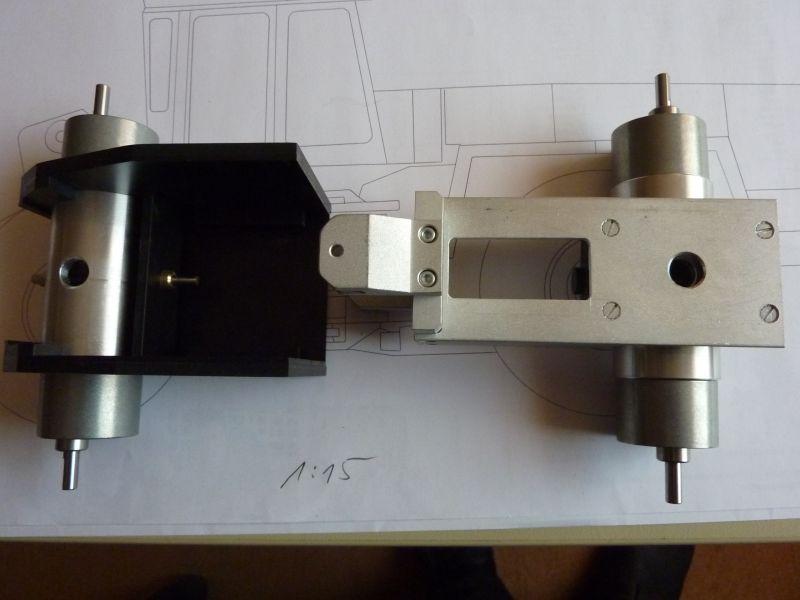 Die Schubstangen kommen beim Original von vorn , geht aber hier nicht ,weil ich den Platz für die Schildhubmechanik brauche . So also ein Kompromiss..., mit dem man aber leben kann.