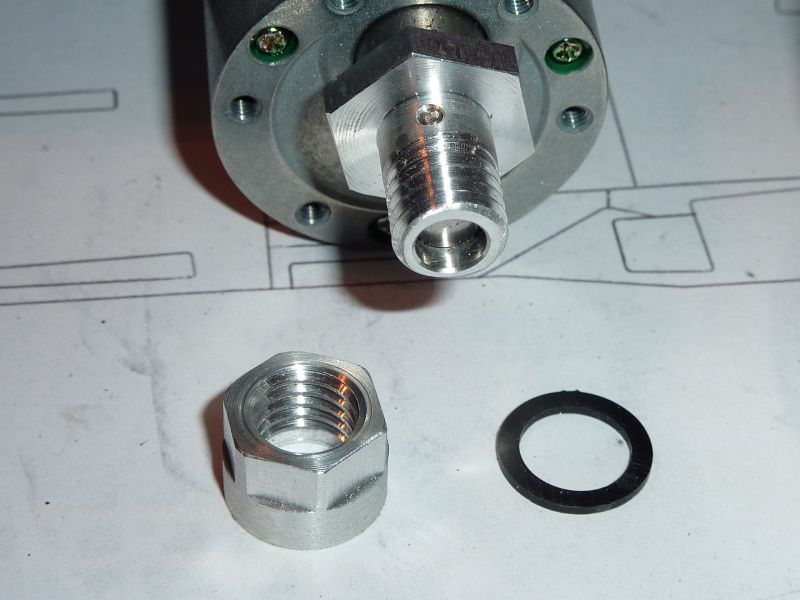 Diese Felgen basieren auf den früher erhältlichen Conradfelgen aus Kunststoff. Dort war ebenfalls ein 19mm Innensechskant "innen" angegossen in dem dann der Mitnehmer des Getriebes steckt. Von vorn wird dann mit einer Mutter gekontert. Die Felge wird dann später mit einem Deckel aufgehübscht welcher der Orginaloptik des RPG entspricht. Man sieht später ergo die Kontermutter nicht mehr.