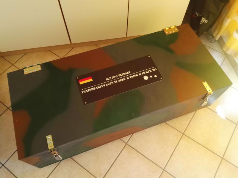 Mit dem Ergebnis bin ich doch sehr zufrieden. Ein Panzer und ein Transporter passen formgenau rein und auch ein Auf den Kopf stellen der Kiste verursacht keinerlei Schäden. Die Sicherung der Fahrzeuge hab ich mit Flausch/Klettbinder gelöst. Die Flauschseite hinterlässt keine Kratzer im Lack.