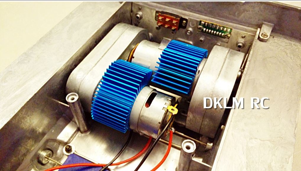 Das ist nichts anderes als ein gekapseltes HengLong 4.1 Getriebe mit Stahlzahnrädern, Kugellagern an allen Wellen und 550er Motoren.