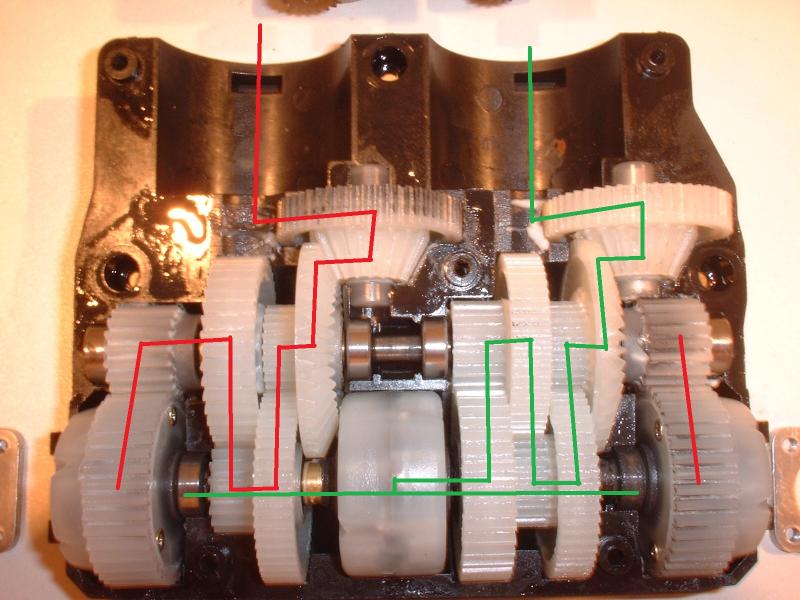 ... offenes Tamiya Leo 2 Getriebe, die Zahräder wurden mit Buchstaben markiert - es ging um das Spiel eines gewissen Zahnrades