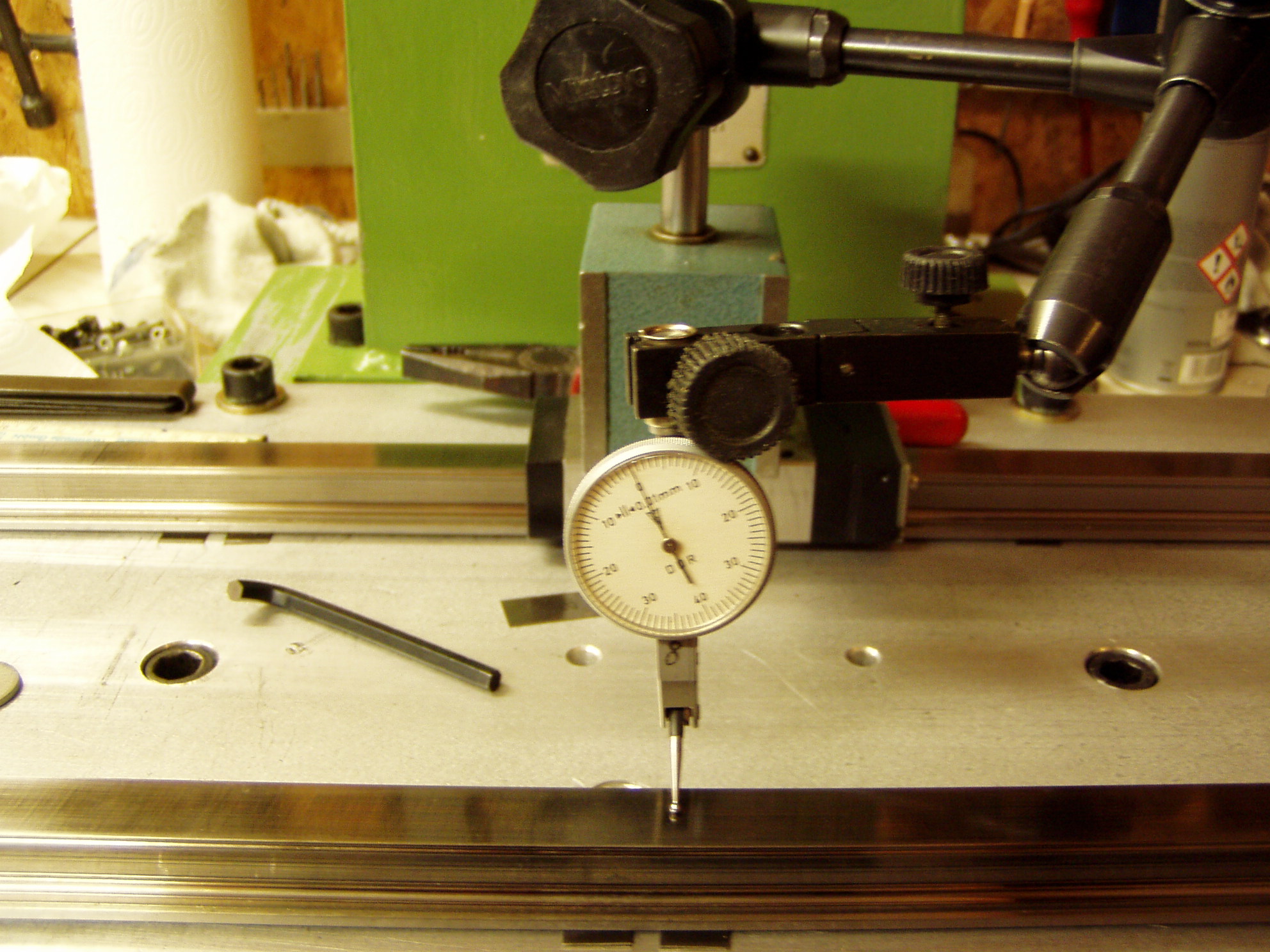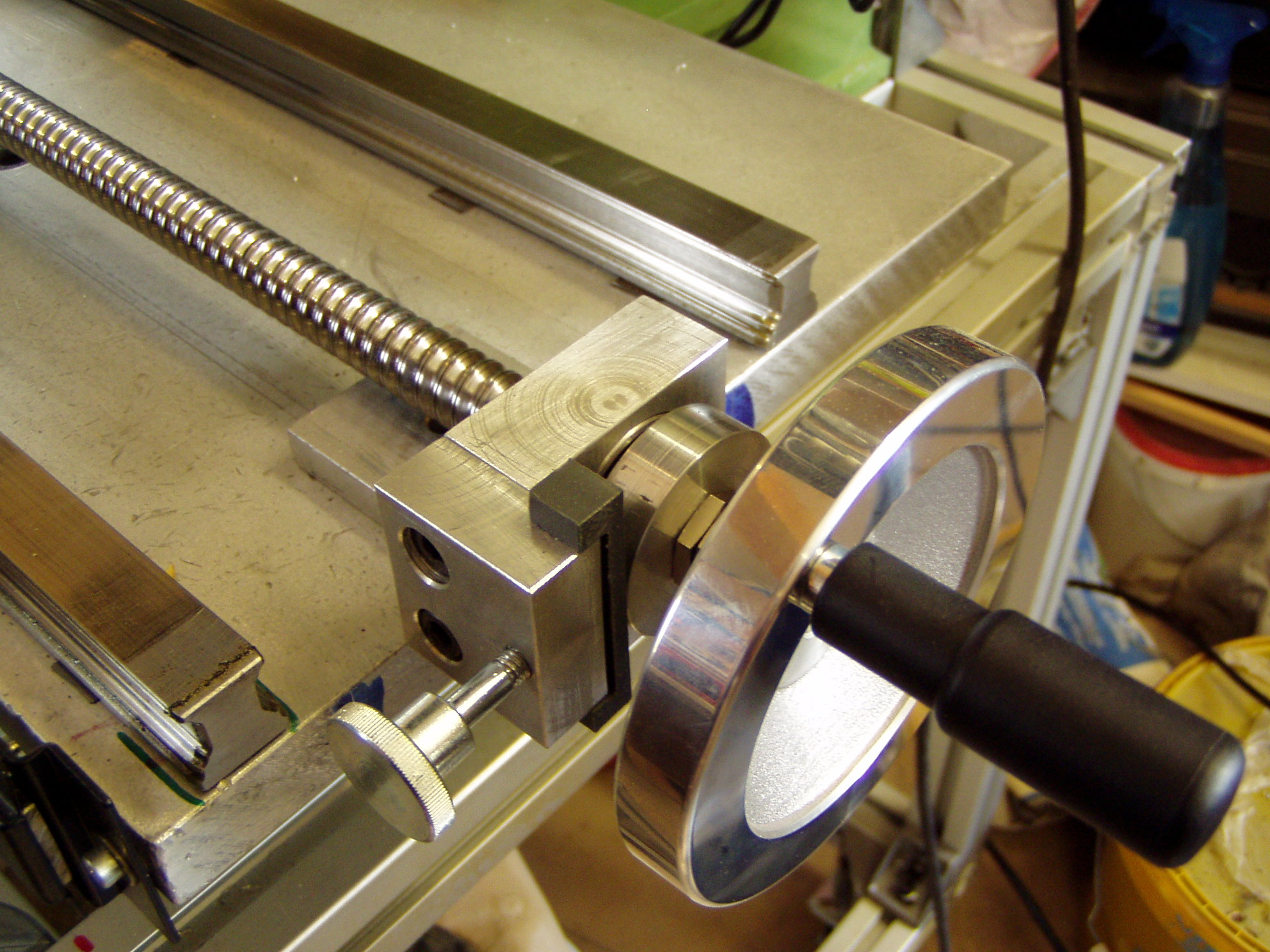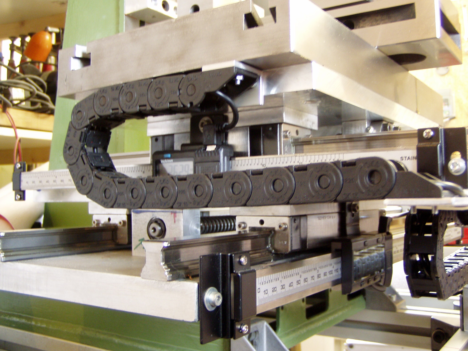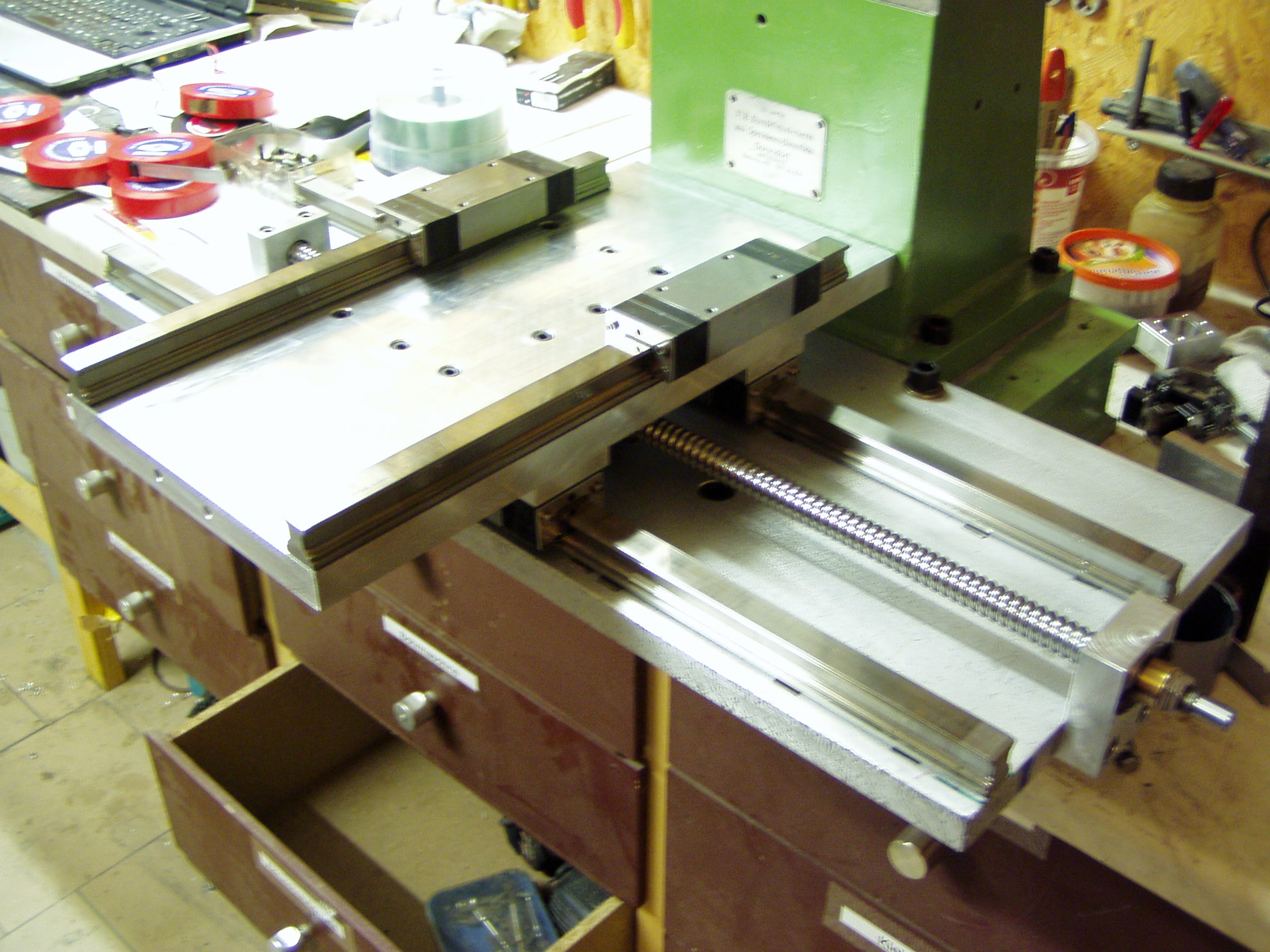 Bevor es kritische Stimmen von Fräsern gibt, obwohl ich für jeden hilfreichen Kommentar offen bin: Ich weis schon, das die Kombination aus stählernen Führungen und Aluunterbau ungünstig ist wegen unterschiedlicher Ausdehnung, aber ich wollte das Teil auch noch irgendwie von A nach B schieben können...:))