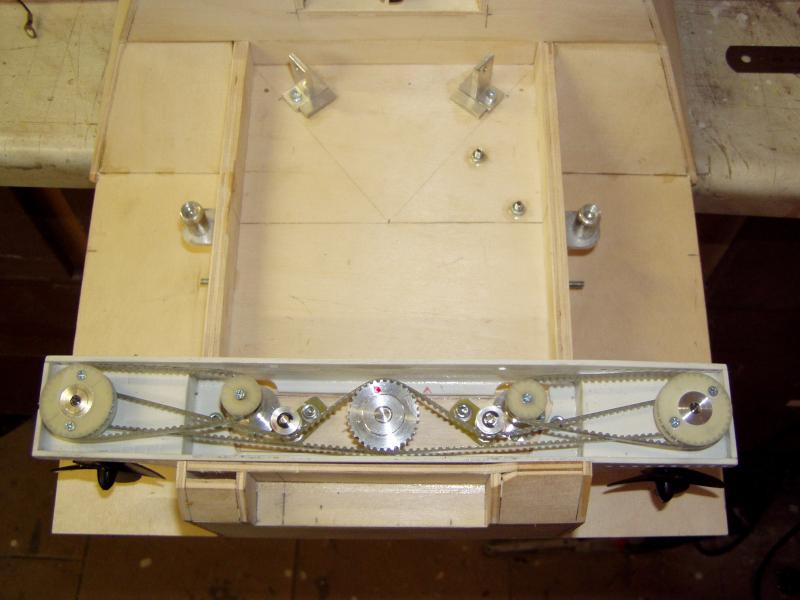 Schottelantiebe mit Riemen für Schwenkbewegung und Antrieb.