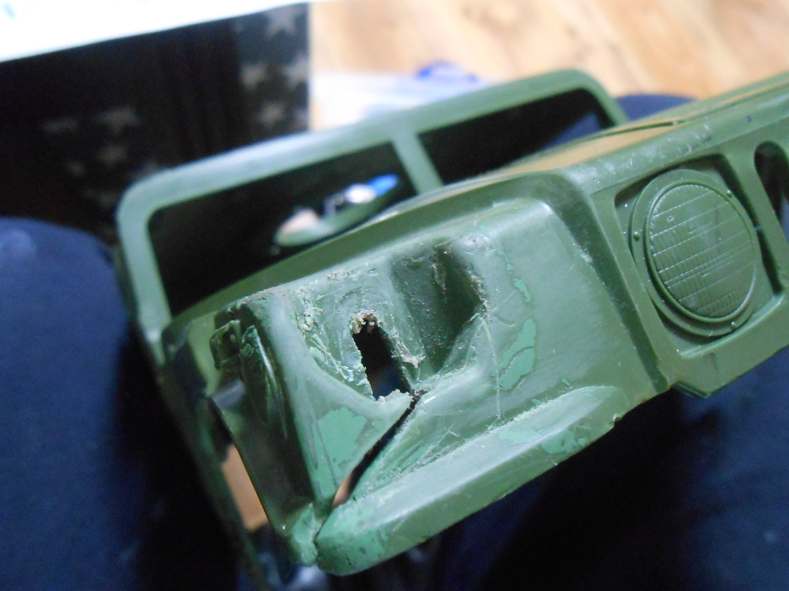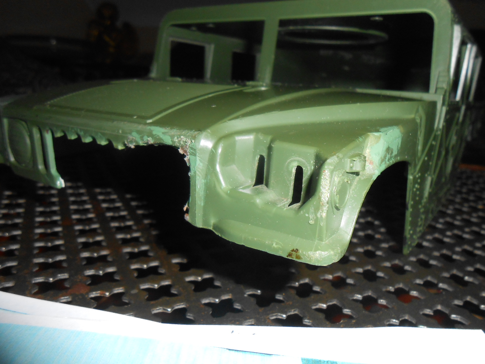 ich habe mir vor einiger Zeit ein Hummer von Tamiya billig zugelegt. Eigentlich wollte ich damit nur schnelles Geld machen aber mittlerweile ist er mir so ans Herz gewachsen das ich Ihn für mich selbst wieder herrichten möchte. Für 45 b€ kann man natürlich nicht viel verlangen deshalb ist viel dran zu tun. Da ich immer Knapp bei Kasse bin werde ich viele Teile selber herstellen da dachte mir ich stelle gleich ein Bericht hier ins Forum da haben andere auch was davon. Erst einmal Bestandsaufnahme auf den nächsten Bildern zeige ich euch erst einmal in welchen erbärmlichen Zustand der Hummer ist