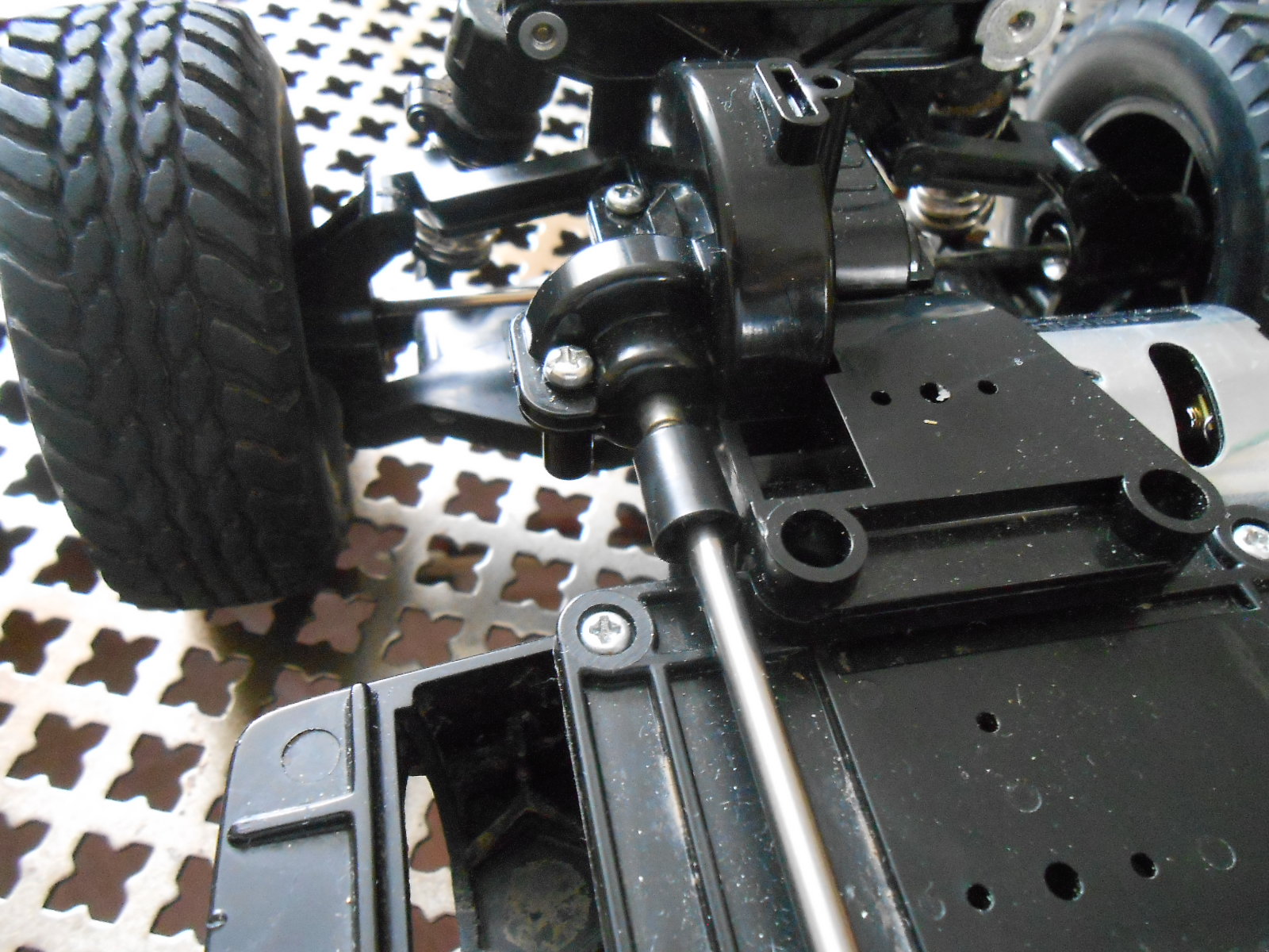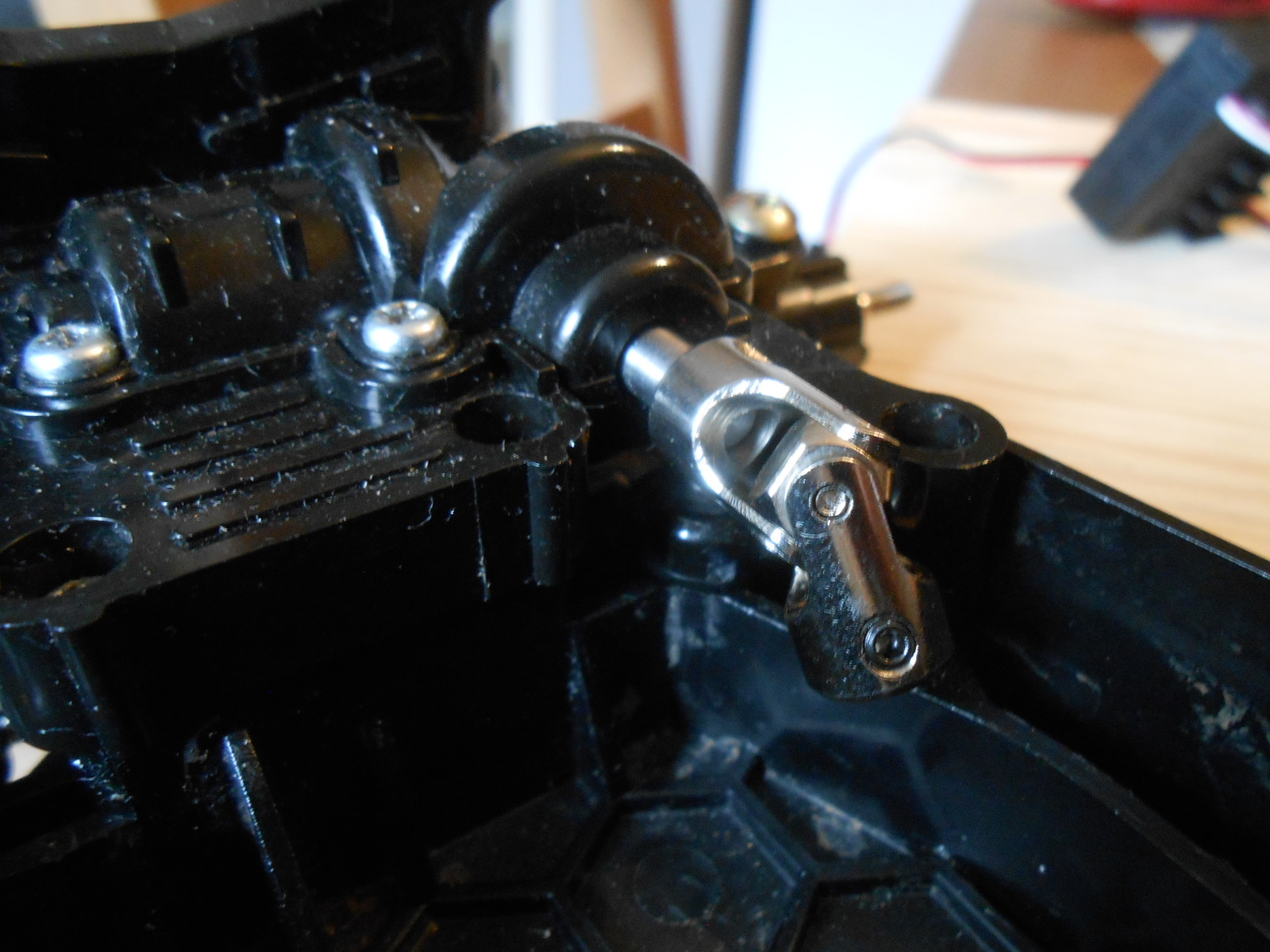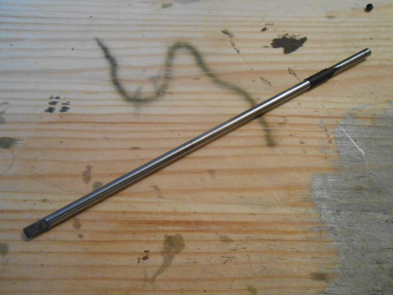 Der Hummer hat ja Allrad antrieb. Verbunden ist das vordere und hintere Getriebe mit einer Welle . Die orig Welle von Tamiya sah mir sehr unstabil aus so das ich mir aus 5mm Silberstahl eine eigene Welle gebaut habe das besondere an meiner Welle ist an einem Ende wird die Welle mit ein Kardangelenk am Getriebe verbunden aber seht euch die Bilder an .
