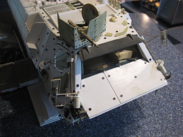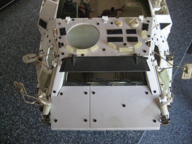 Im vorderen Bereich der Windschutzscheibe bzw. Beschussklappen, wurden die Puffer platziert.