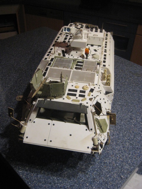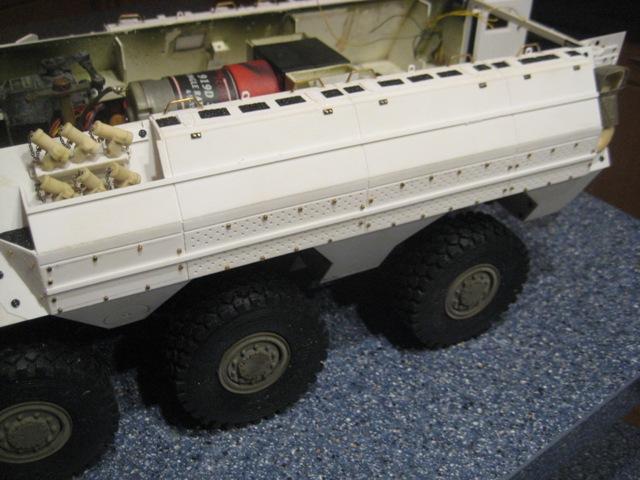 ohne die Arbeit jetzt gering schätzen zu wollen. Im Gegenteil, scale ist es ja, das Grundfahrzeug aufzupolstern. Aber im Grunde bedeckt die Zusatzpanzerung doch den ganzen Rumpf. Es wäre eigentlich gar nicht zwingend, einen "alten" Fuchs darunter zu haben? Würde man der Hülle eine innere Struktur hinzu fügen könnte man doch gleich eine Ausbaustufe so hin stellen? Wäre ja vielleicht was für die Frässatz-Anbieter. -- Isch ´abe ga´ keine Fahrrad!