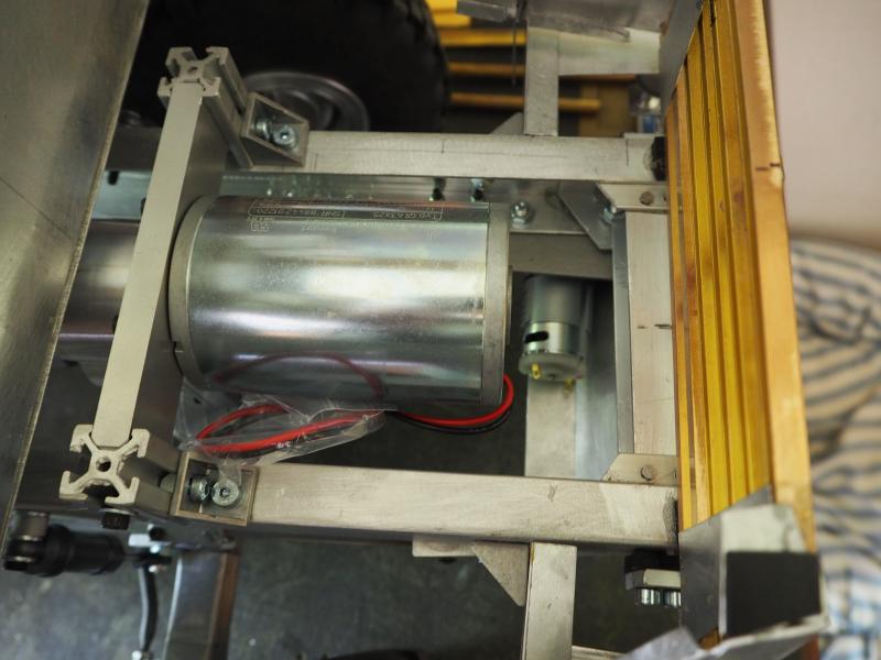 RB 35 mit 9 U/min. Der wird dann wie ein Servo gefahren. Das Ganze noch verkleidet mit einem Auffahrschutz.
