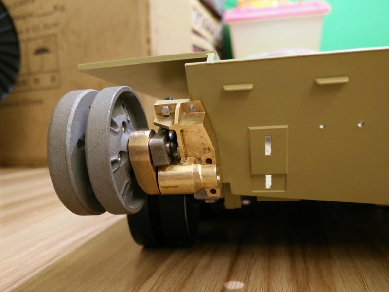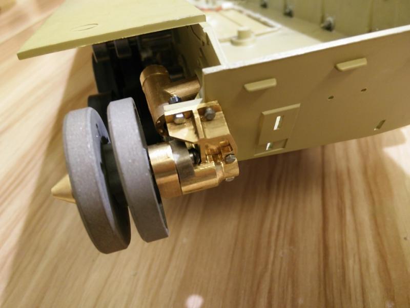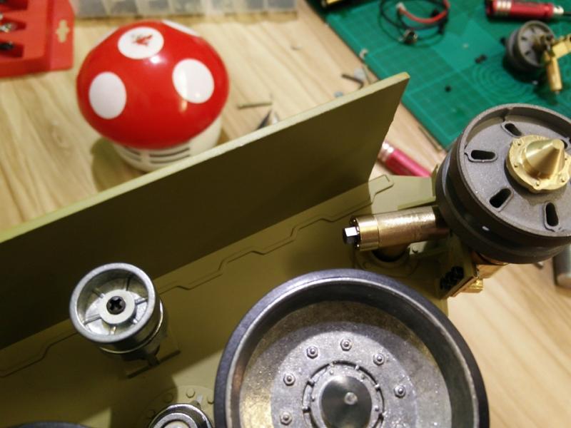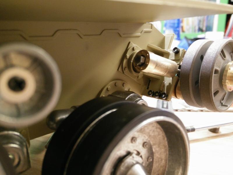 Ich möchte ferner die Leo-II Ketten von Tamiya nutzen, wenn die originalen hin sind, was sehr schnell gehen wird. Dazu müssen die Treibräder angeblich etwas anders montiert werden, um größere Breite zwischen den Zahnkränzen zu erhalten. Bist Du schon an dem Punkt, dazu habe ich die Bilder nirgends gefunden.
