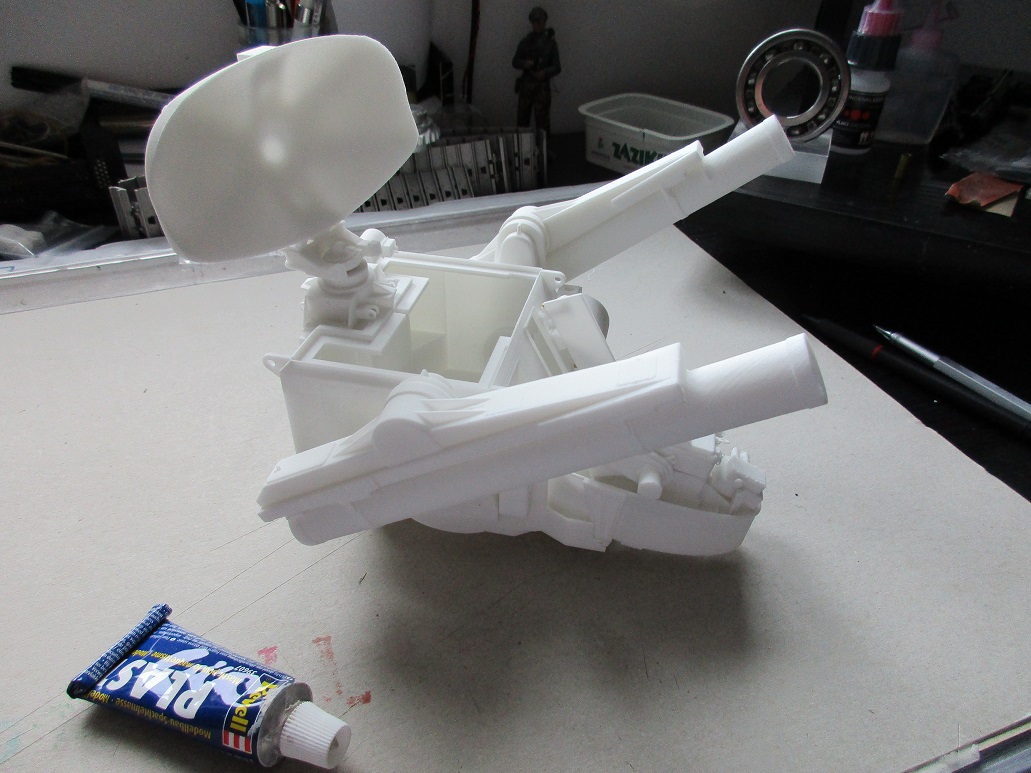 Maßstab hier ist 1 zu 16. Der Turm ist sehr detailliert und komplex. Die Werferarme möchte ich noch beweglich machen ebenso natürlich den Schirm des Suchradars und des Folgeradars. Das ganze besteht aus fast 20 Einzelteilen wobei einige noch im entstehen sind.