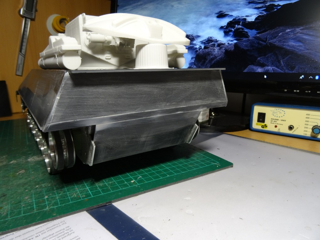 Der Turm sitzt jetzt auch schon an der richtigen Position, und man sieht schon den Unterschied zum reinen Marder Fahrgestell.