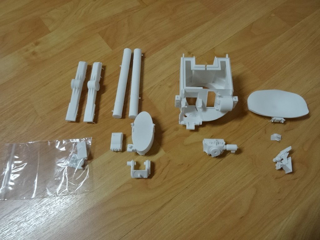 Die 3D Druck Teile (die beiden Arme fehlen auf dem Bild)