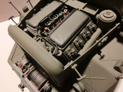 Am Motor fehlen noch einige Rohre, Kabel und Kleinteile aber der Block ist schon gut so.