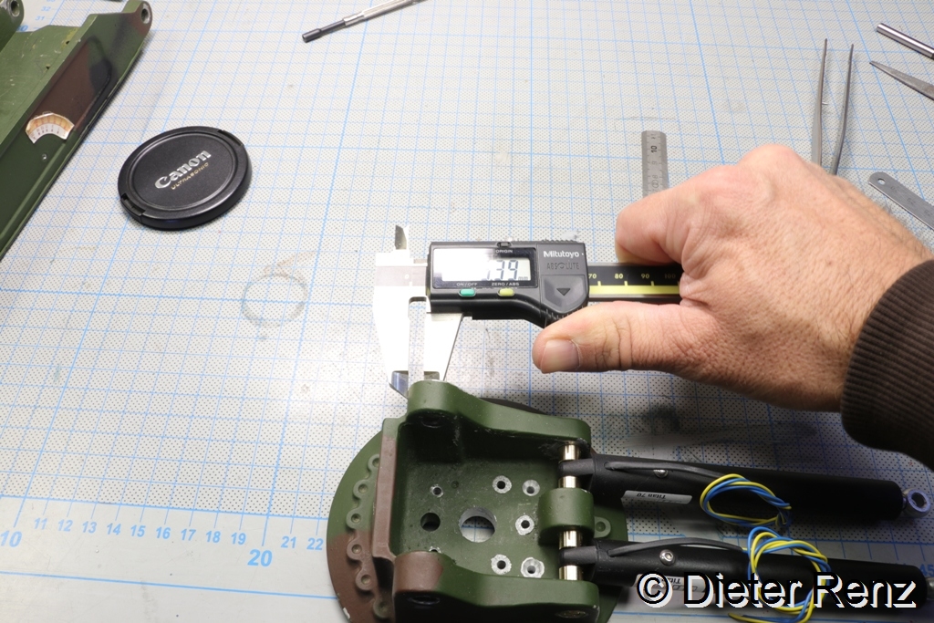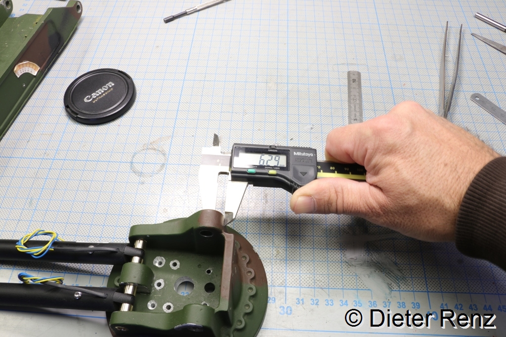 Aber es geht ja noch Weiter, auch die Bohrungen sind nicht im Winkel zur Achse des Arms, der Unterschied ist fast ein Millimeter