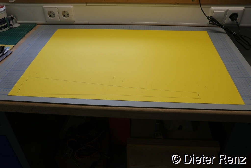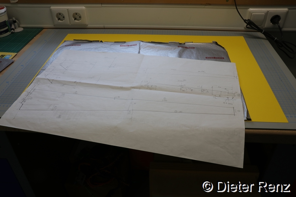 Der erste Schritt war, nach Guter alter Sitte die Zeichnung mittels Kohlepapier auf einen Karton zu Übertragen, um Schablonen zu erstellen.