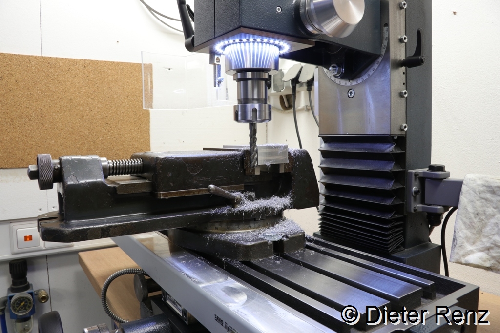 Danach oben und unten ein Loch gebohrt und mit ‘nem Fräser Nachgearbeitet