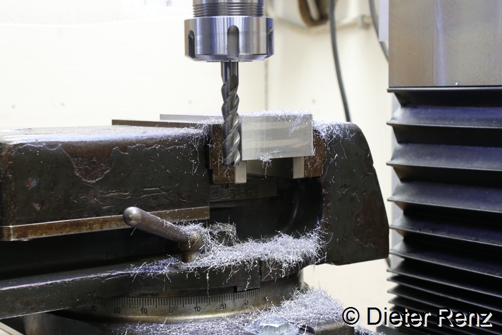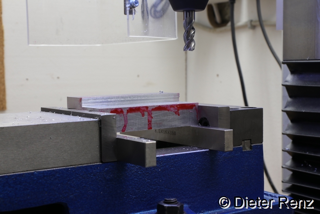 Jetzt wurde der Block flachgelegt und eine Stufe Gefräst