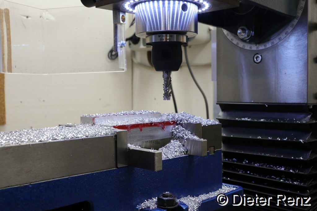Der Überlange Fräser und das Alublech für den Kranarm
