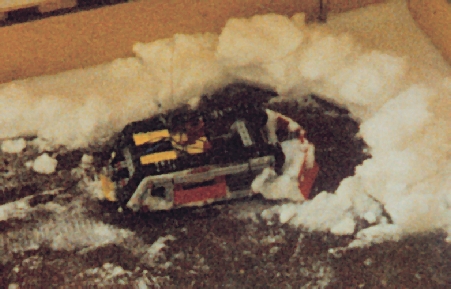 Ich habe das Fahrzeug zu Jugendzeiten aus Fischertechnik-RC-Komponenten nachempfunden. Meine Lenkbremsen konnten allerdings nur komplett blockieren, Sperrzähne wurden über das Lenkservo in die Kettenritzel eingespurt, was nur bei seeehr langsamer Fahrt funktionierte. Auch ich hatte nix, womit ich Reibbremsen hätte realisieren können, die kräftig genug wirkten. Das ich damit an sich recht nah am Original war, war mir seinerzeit gar nicht bekannt. Geradeaus fuhr das Ding übrigens recht gut, auch unter schwierigen Bedingungen, es gibt leider nur ein schlechtes Foto:
