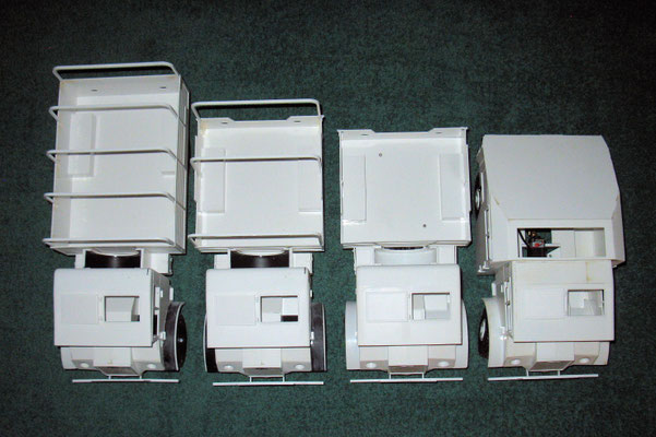Nur die beiden 101 Zoll Chassis sind rc, der Gun Tractor sogar mit Eigenbaurahmen. Die anderen haben nur Rahmen mit Blattfederdummys und Gewindestangen als Achsen. Aber die werden auch noch auf RC umgebaut.