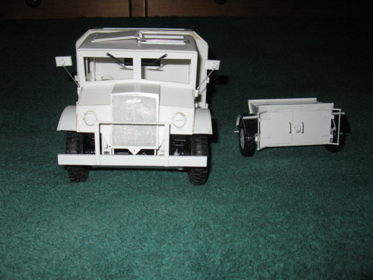 So, die Protos sind fast fertig, fehlen noch die Kanisterhalterungen, die ich aus Messingprofilen löte. Ebenso die Sitze und die Tuchabdeckungen am CGT (Dach und Mun-Karren).
