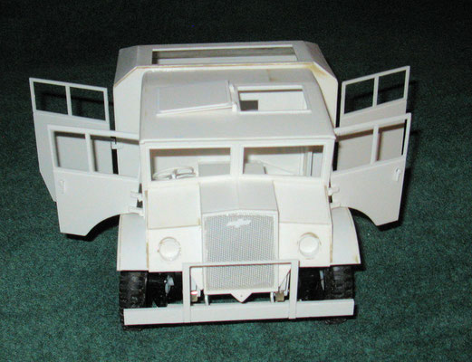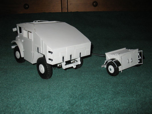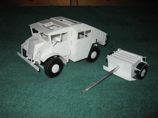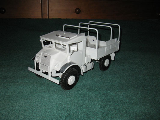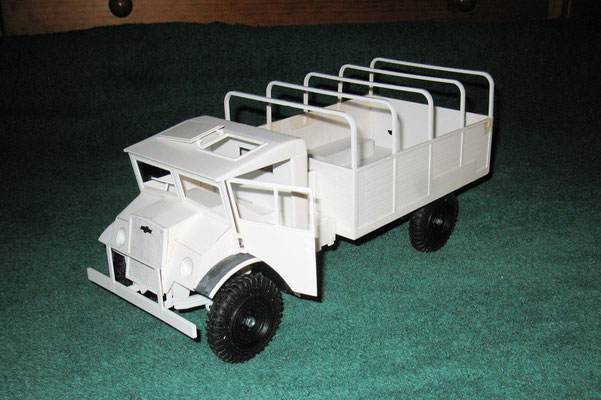 Die Reifen sind auch gemacht, bis auf den 134er auch die Innenfelgenabdeckungen. Nun gehts an die Schmutzfänger und Benzintanks sowie die Sitze für Fahrer und Beifahrer. Und vor allem der Heckrahmenträger für die Anhängekupplung. Ganz wichtig. Habe schon die Daten für den Mun-Karren und ne engl. 6pdr Feldkanone besorgt. Muß aber erst noch gebaut werden, das Dingens.