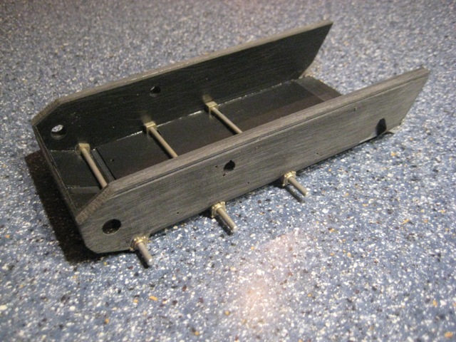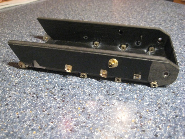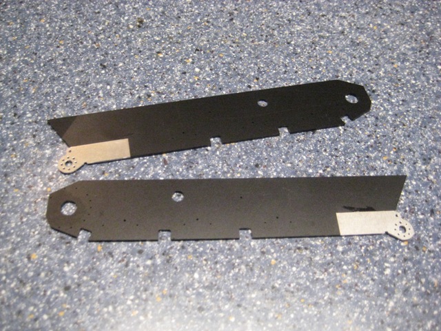 Als erstes werden die Alu Aufnahmen für die hinteren Kettenspanner an den Seitenteilen positioniert und verklebt.