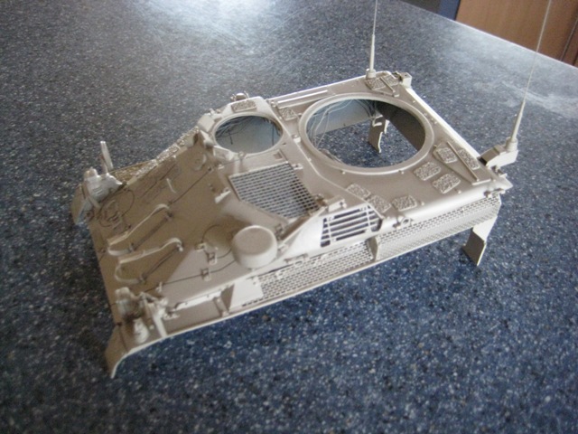 Die Fahrwerkswanne sowie das Oberdeck sind in Sandbeige grundiert worden.