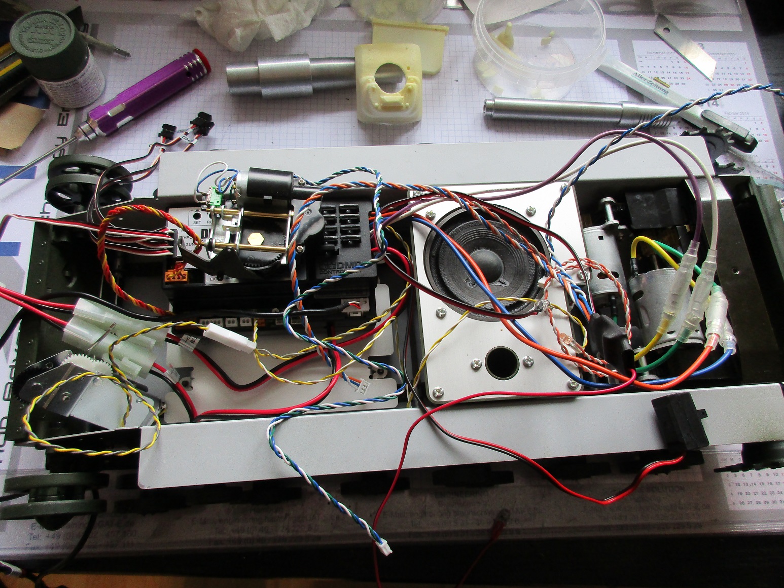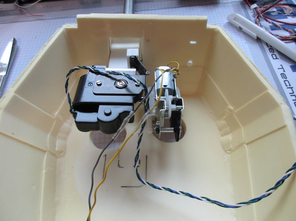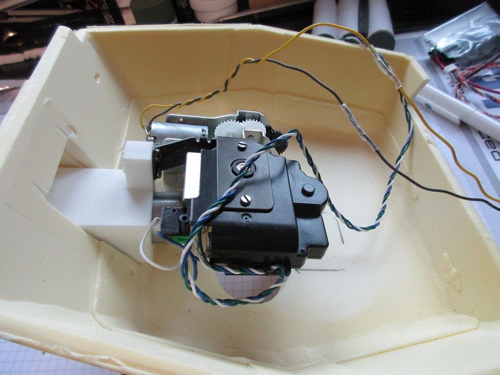 Da wieder etwas zeit fürs Bauen ist geht es auch hier weiter. Die Funktionen des Tamiya KW Panzers Rohrerhöhung, Rohrrückzug und Abschußblitz möchte ich integieren. So hab ich jetzt erstmal alles provisorisch zusammengestöpselt um die Funktionen und Wege zu sehen. Für das Metallrohr muß ich mir noch eine passende Rohrwiege mit Anschlüssen für die Motörchen ausdenken. Aber es geht weiter.