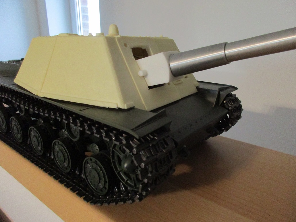 Mir persönlich gefällt das Modell sehr gut. Ich hab auch noch ein paar "heroische" Decals dazu und etwas "Gerödele". Der "Durchschuß in der Rohrblende verschwindet natürlich auch noch bis zum lacken.