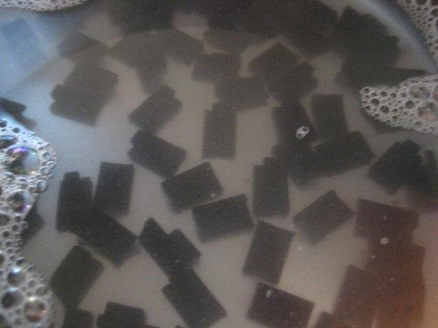Im Anschluß habe ich kaltes Wasser mit Spülmittel verwendet.