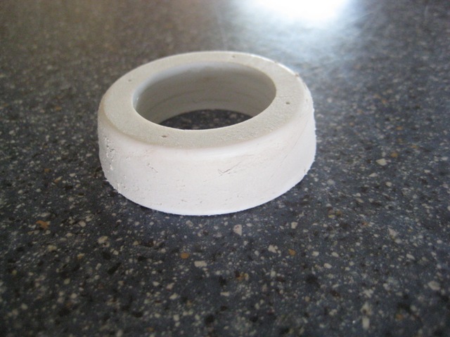 Nachdem der Kleber ausgehärtet ist, kann an der Drehmaschine das Ding bearbeitet werden.