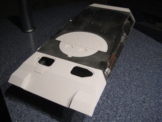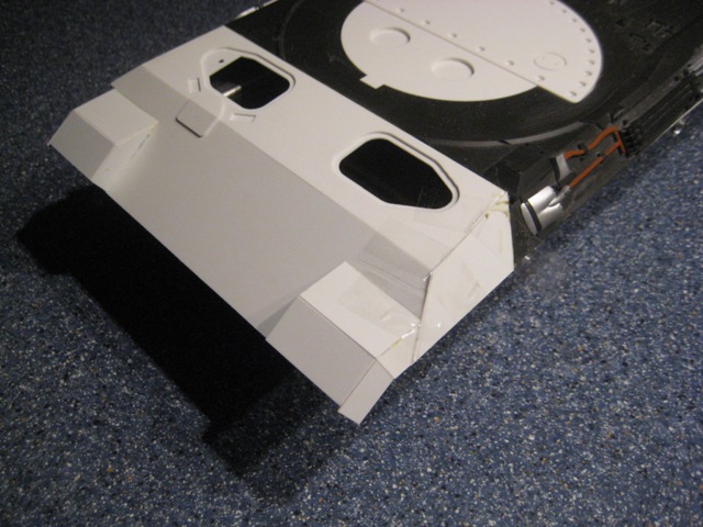 Es muss das Oberdeck mit dem Heckabschluss zusammengeführt werden.