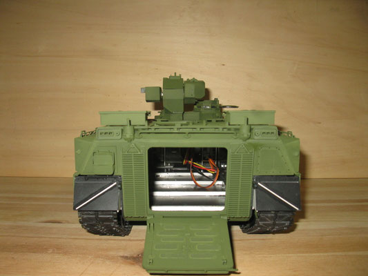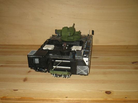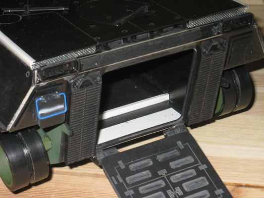 Und weil ich grad dabei war auch den Haltegriff am Heck, die Rückleuchten und die Gewehrauflagen sowie die Lüftergitterpanzerungen hinten angebracht. An 2 Fahrzeugen hab ich auch den Antirutschbelag angebracht.